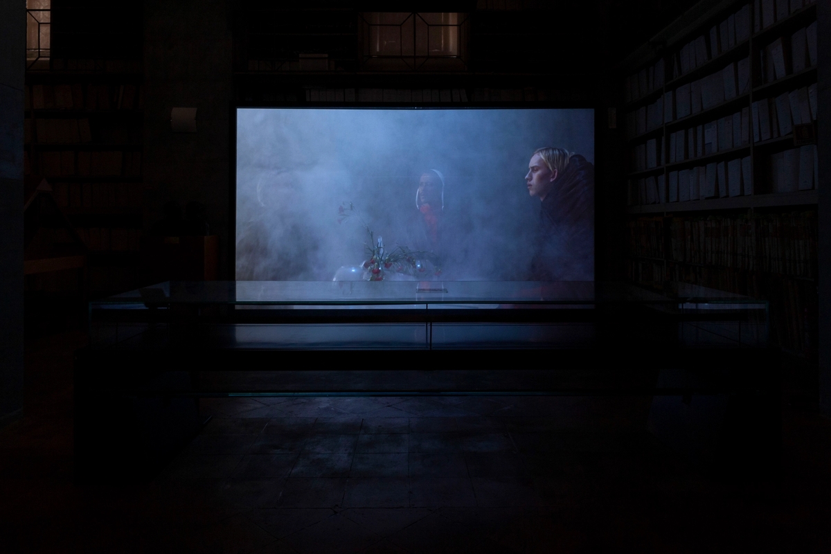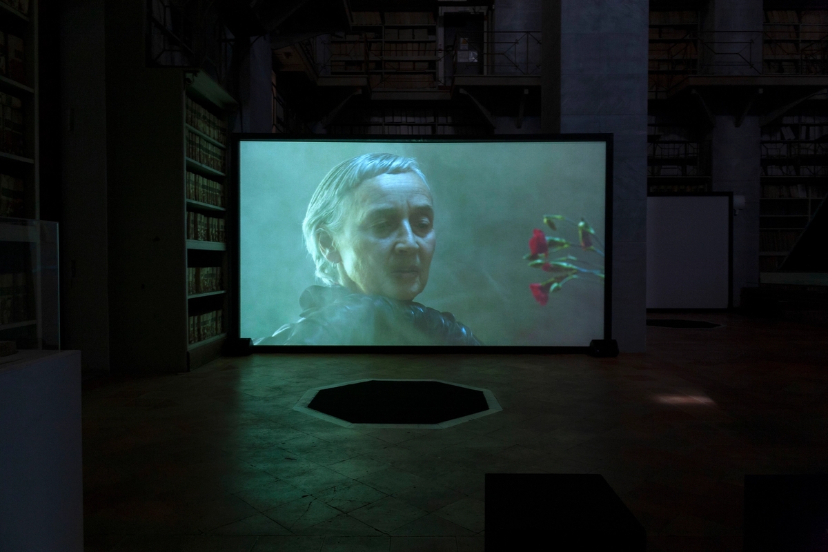 Dorota Gawęda and Eglė Kulbokaitė Mouthless Part II, 2021. Three channel video installation. Laments, Archivio Storico Communale di Palermo. Photo: Iolanda Carollo.