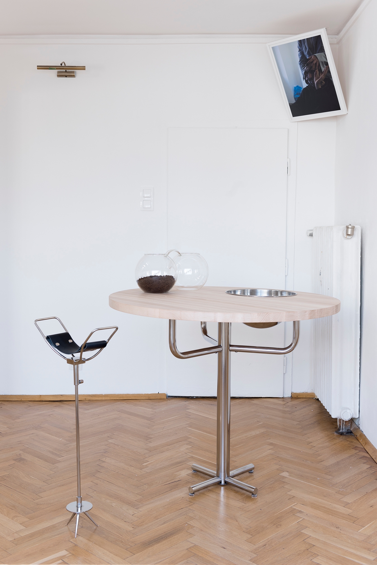 Ilgės, 2020. Wood, stainless steel; 100 x 100 x 140 cm.