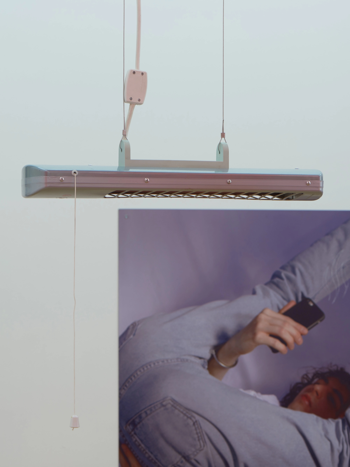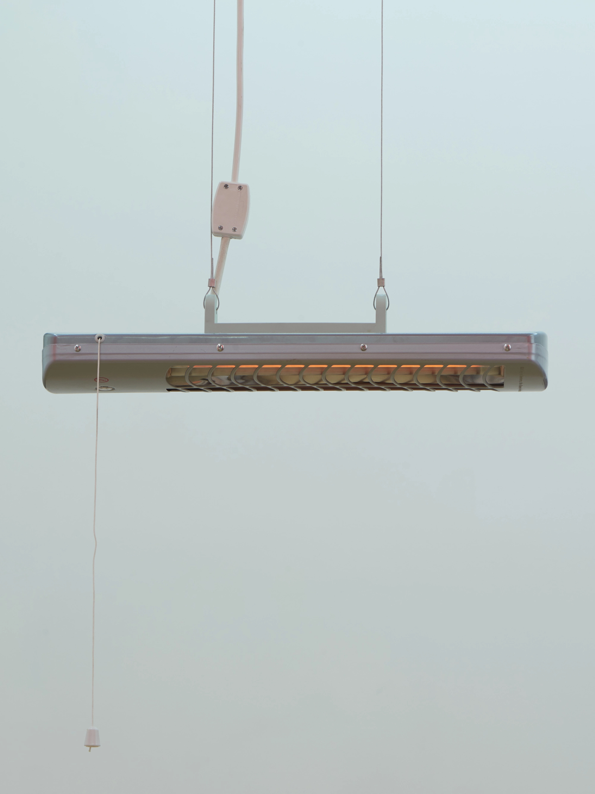 Engraving on heat lamp. Dimension: 1250x40x90mm.
